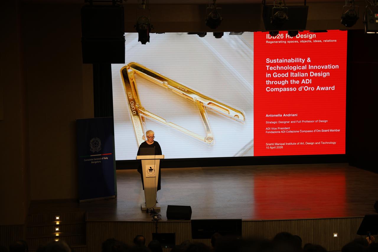 Il programma si è aperto al mattino con una lectio magistralis presso il Srishti Manipal Institute of Art, Technology and Design, tenuta da Antonella Andriani, Vice Presidente di ADI (Associazione per il Disegno Industriale). Il suo intervento, dal titolo “Sustainability and Technological Innovation in Fine Italian Design through the ADI Compasso d’Oro Award”, ha offerto un’ampia panoramica sull’evoluzione e sulla rilevanza internazionale del Premio Compasso d’Oro, attraverso una selezione di casi studio e di prodotti premiati. Alla lezione a cui hanno partecipato circa 250 tra studenti e docenti dell’area design, hanno fatto seguito una sessione di domande e risposte e alcuni momenti di confronto informale.